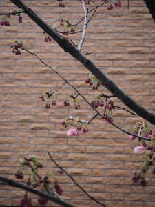 我が家の桜、開花宣言、まだまだ朝晩ひんやりするので