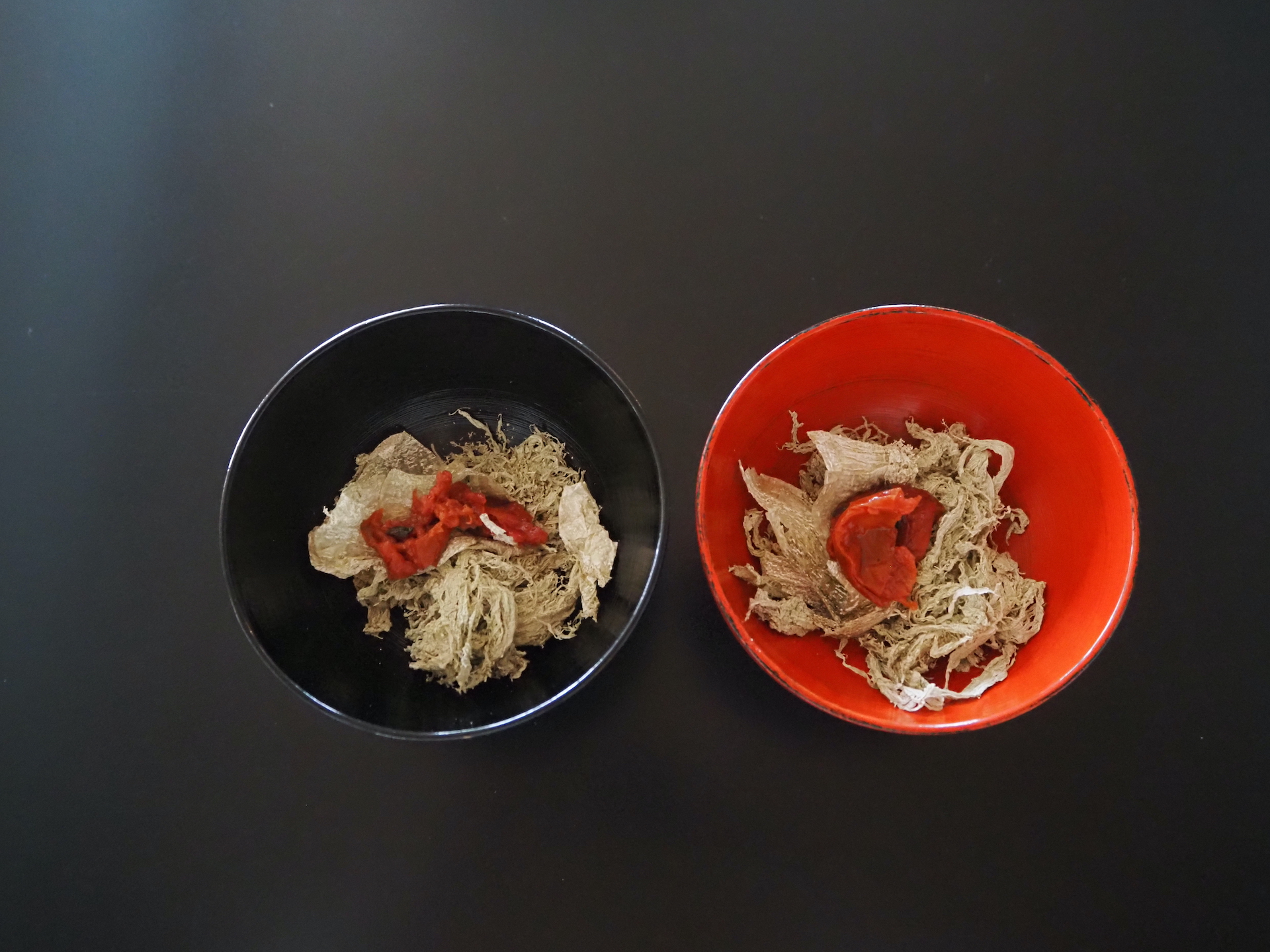お醤油たらり、梅干しをつぶしながら飲む椀も