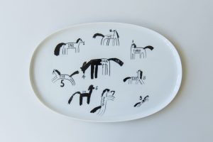 馬が9頭 うまくいくのお皿を作りました。